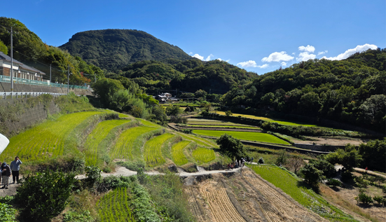 את הדרך ליצירה הראשונה (שנקראה Embrace) וליצירות שאחריה עשינו במסלול נפלא בין הרים ששילב הליכה בין טרסות אורז ומטעי אפרסמונים. משם עברנו עוד כמה יצירות מרוחקות זו מזו, כאשר את הניווט דני עשה על פי מפה שאספנו בדוכן המודיעין בנמל. לאחר מכן עלינו שוב על האוטובוס (שלמרות שמדובר בחג ובפסטיבל האומנות, התדירות שלו היתה נמוכה יחסית) והמשכנו לאזור בו היה מקבץ היצירות השני.