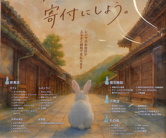במלון ובאי פזורים שלטים המנחים לגבי ההתנהגות הרצויה על הארנבים: אסור להרים, אסור להאכיל מהיד, אסור ללטף ואסור להאכיל על הכביש. הגענו למלון שהיה מעין חצי ריוקן. חדר גדול עם טאטאמי ומרפסת מצד אחד, אבל מיטות מערביות מצד שני. אונסן מצד אחד, אבל ארוחת ערב בסגנון בופה מצד שני.