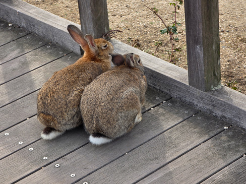 השארנו את התיקים בחדר ויצאנו למסלול סביב האי. לקחנו איתנו את מזון הארנבים שקנינו בנמל והתחלנו לצעוד בכביש המקיף את האי. האי עצמו קטן יחסית והקפה מלאה שלו ברגל לקחה כשעתיים בקצב צב שעוצר כל 10 מטר להאכיל ולצלם ארנב. מזג האוויר היה חמים אך מעונן והנוף היה יפה במיוחד בתאורה זו. בכל היקף האי נתקלנו (והאכלנו) ארנבים שהיו חמודים וחברותיים.