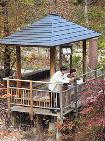 התחלנו בעצירה קצרה לקפה, ממנה המשכנו לְרוֹטֵנְבּוּרוֹ (אונסן פתוח לכיפת השמים) Sainokawara open bath שהדרך אליו היא פארק קטן משובץ בבריכות קטנות של מים לשכשוך הרגלים, מקדש קטן לַקָאמִי אִינָארִי המלווה כתמיד בשועלים, ושאר פינות חמד קטנות. האונסן היה מעט שונה מאונסנים קודמים בהם ביקרנו. ראשית היו שלטי אזהרה מגנבים, שנית לא היה מקום להתקלח לפני הכניסה לאונסן - דבר שהקפידו עליו היטב בכל אונסן אחר בו ביקרנו. אני מנחש שזה נובע מהרכב המינרלים, הטמפרטורה והתחלופה הגבוהה של המים בבריכה. האונסן עצמו מדהים - בריכה ענקית של מי גופרית מלוחים וריחניים בטמפרטורה גבוהה, עם איים במרכז שאפשר לשבת או לשכב עליהם להתקרר בין הטבילות. פשוט תענוג.