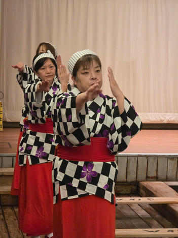 מהמסעדה המשכנו לצפיה בטקס Yumomi (湯もみ) – טקס קירור המים המפורסם של העיירה. במקום להוסיף מים קרים למי המעיינות הרותחים (ולמהול את המינרלים שבהם), הנשים המקומיות מערבבות את המים בעזרת לוחות עץ ארוכים, בשירה קצבית (צ׳וינה צ׳וינההה…) ובתלבושות מסורתיות, עד שהטמפרטורה מתאימה לרחצה.