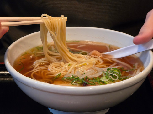 הגיע הזמן לארוחת צהריים, אבל עדיין היה גשום ולא נעים להסתובב ממקום למקום, אז רצינו למצוא משהו קרוב או לכל הפחות בדרך ליעד הבא שלנו. בדרכנו לתחנת רכבת סמוכה נתקלנו במסעדה קטנה בשם Minraku. באמצעות שילוב של תמונות ותרגום של גוגל, הזמנו לכל אחד מאיתנו קערת ראמן עצומה והר קטן של אורז. היה טעים ואפילו התגברנו בהצלחה על הכמות. הגענו קרוב יחסית לשעת הסגירה שלהם לצהריים, וכשבאנו לשלם, שמנו לב ששתי הנשים שניהלו את המקום, התישבו לאכול. חיכינו קצת, כי לא רצינו להפריע להן, אבל לבסוף התנצלתי (גוֹמֵנַסָאי!) וביקשתי לשלם. הן קיבלו את זה בהבנה ואפילו צחקו כשאמרתי בתיאבון לזאת שנשארה לשבת לשולחן.
